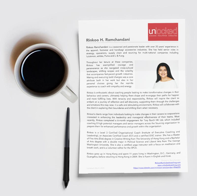 Take the first step toward unlocking your potential. Email Rinkoo Ramchandani at rinkoo@unlockedcoaching.com to schedule your complimentary consultation.